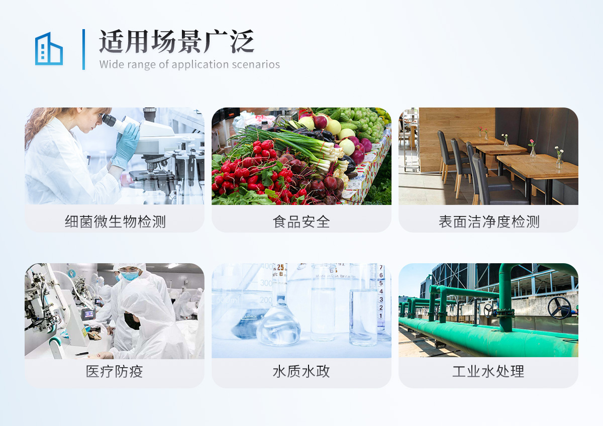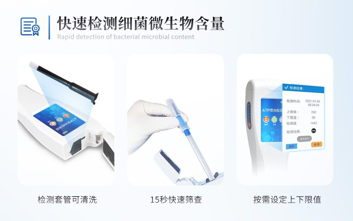 實用性 —— 可根據(jù)環(huán)境檢測需求設定上下限值,做到數(shù)據(jù)快速評估預警,表面潔凈度快速篩查。靈敏度高 —— ***************速度快 —— 常規(guī)培養(yǎng)法18-24h以上,而ATP只需要十幾秒鐘 .可行性 —— 微生物數(shù)量與微生物體內所含ATP有明確的相關性。 通過檢測ATP含量,可間接得出反應中微生物數(shù)量可操作性 —— 傳統(tǒng)培養(yǎng)方法需要在實驗室由經(jīng)過培訓的技術人員進行操作;而ATP快速潔凈度檢測操作非常簡便,只需簡單的培訓即可由一般工作人員進行現(xiàn)場操作。體驗更好 —— 試子套管采用插拔式靈活設計,可定期清洗長期使用,延長儀器壽命。