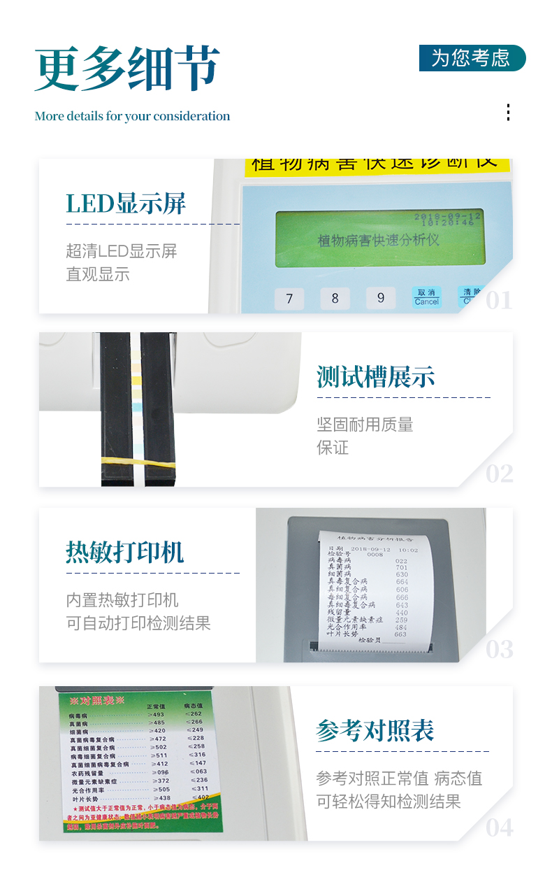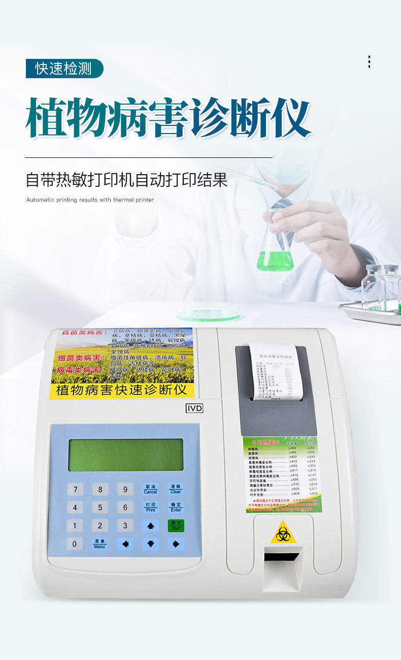 簡介:植物病蟲害檢測設備簡介:細菌、真菌和病毒是引起蔬菜、水果、小麥,玉米、水稻、大豆等農作物及林木,花卉等病害的主要原因。這些病害微生物一般通過莖、葉、根系、果實等侵染植 物,大部分病害在染病初期雖能較易防治,但一般不易被人察覺,病害一量發生,防治不僅困難而且效果較差,致使農作物減產,甚至絕收。如何在病害