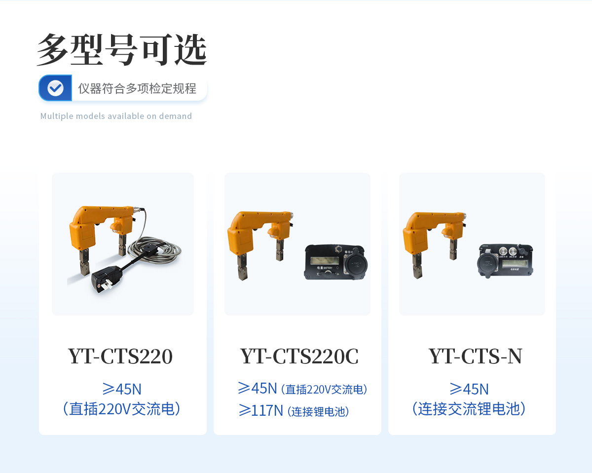 | 型 號 分 類:YT-CTS220C電磁軛探傷儀 | 交流電源:AC220V 50Hz | 工作溫度:-10~+40℃ | 工作溫升:<18℃ | 相對濕度:<80%無結(jié)露 | 靈敏度:A1型標(biāo)準(zhǔn)試片15/50刻槽清晰顯示 | 工作電流:AC2.2A /DC1.5A | 充電電源:110-240V | 充電時間:6小時 | 電池使用時間:6h/8h(DC) | 暫載率:50% | 磁 化 極 距:0~220mm | 提升力:A C ≥45N(直插220V交流電) | 重量: (1)電磁軛:2.5kg (2)直流磁化電源(鋰電池):0.6kg |