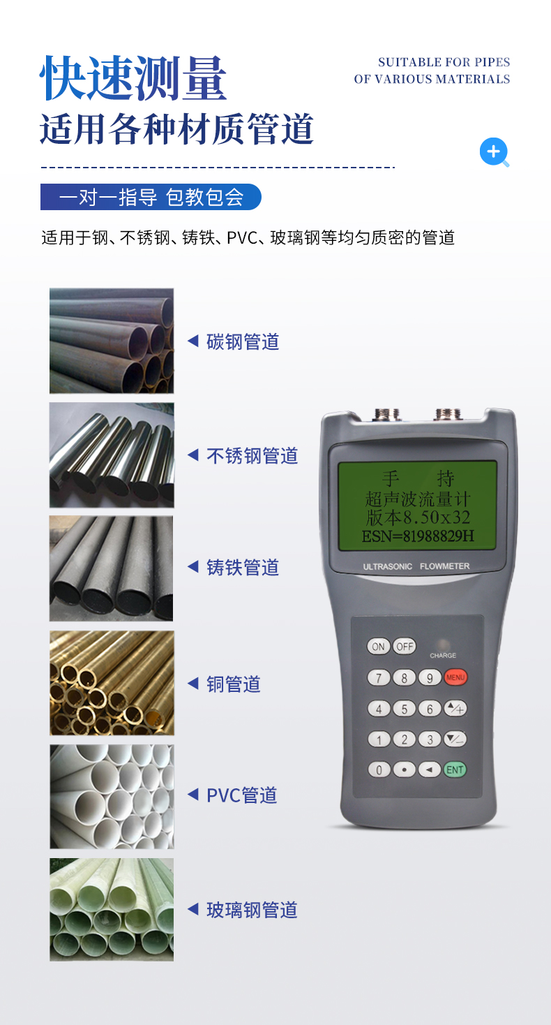 適用管材:適用于鋼、不銹鋼、鑄鐵、PVC、玻璃鋼等均勻質(zhì)密的管道;