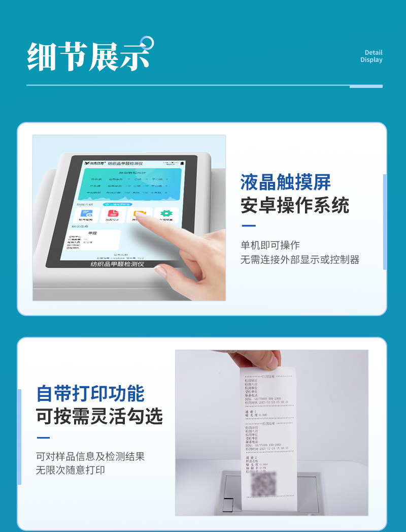 該紡織品甲醛檢測(cè)設(shè)備滿足紡織品甲醛含量檢測(cè)的中國(guó)標(biāo)準(zhǔn)《國(guó)家紡織產(chǎn)品基本安全技術(shù)規(guī)范》(GB 18401-2010)、《紡織品.甲醛的測(cè)定.第1部分:游離和水解的甲醛(水萃取法)》(GB/T 2912.1-2009), 適合各種紡織品、服裝等的甲醛含量檢測(cè)。