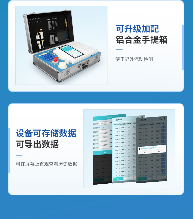 ⑦ 該儀器模塊化高度集成,同步設(shè)有數(shù)字化管理模塊、無(wú)線通訊模塊,可將檢測(cè)結(jié)果進(jìn)行分析,直接上傳至數(shù)據(jù)平臺(tái),實(shí)現(xiàn)數(shù)據(jù)共享,方便后期進(jìn)行數(shù)據(jù)分析與統(tǒng)計(jì)。