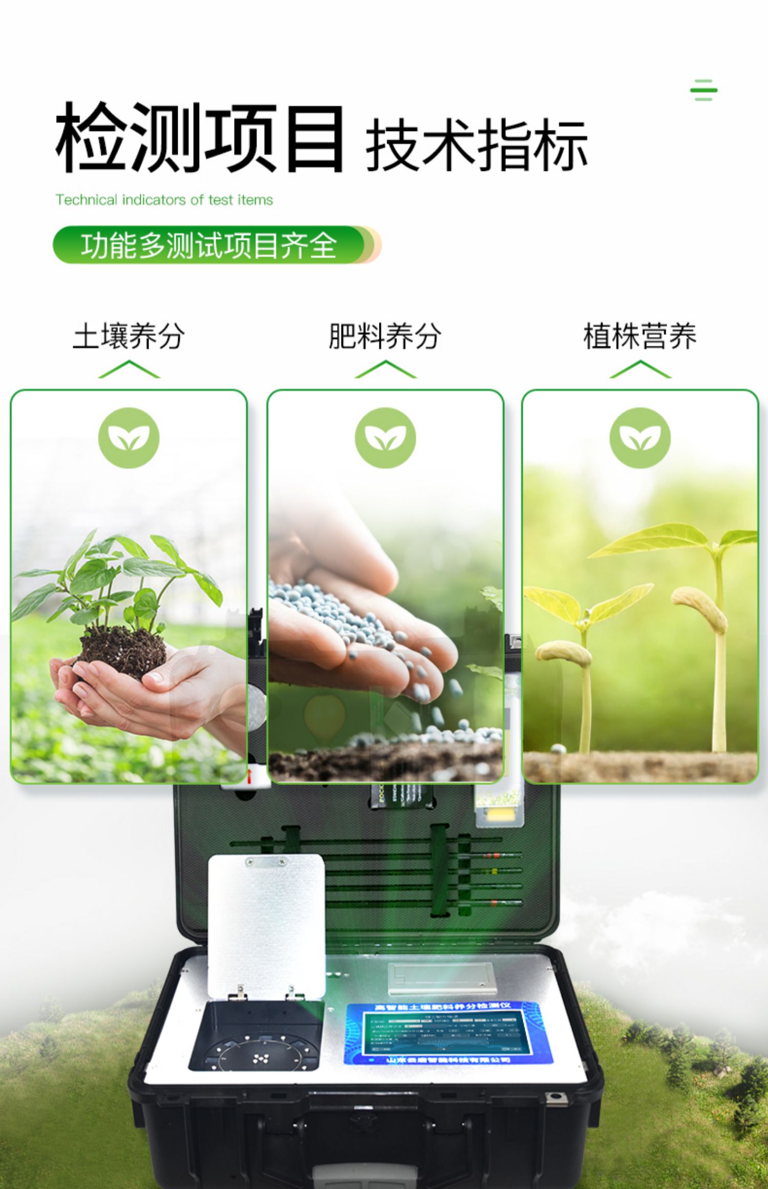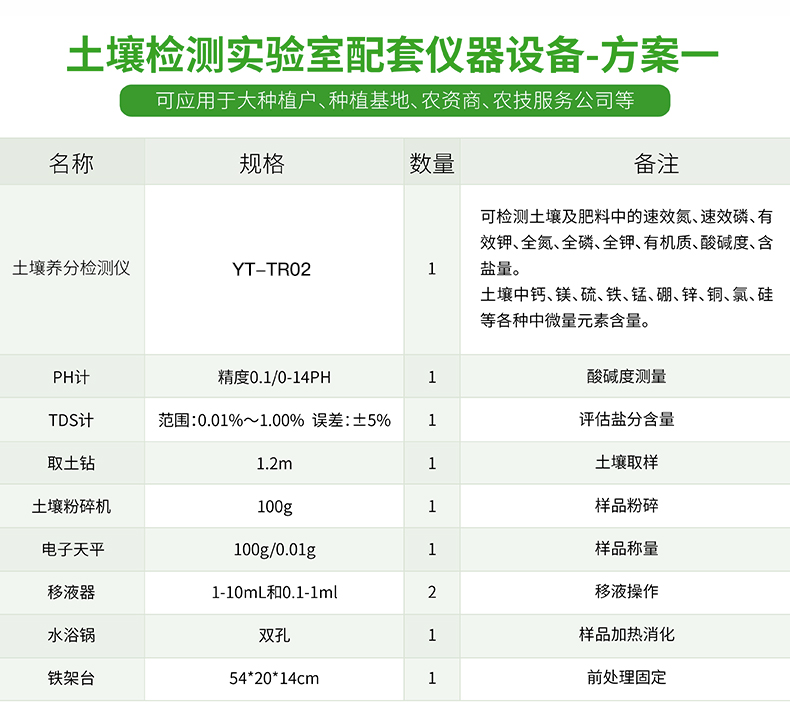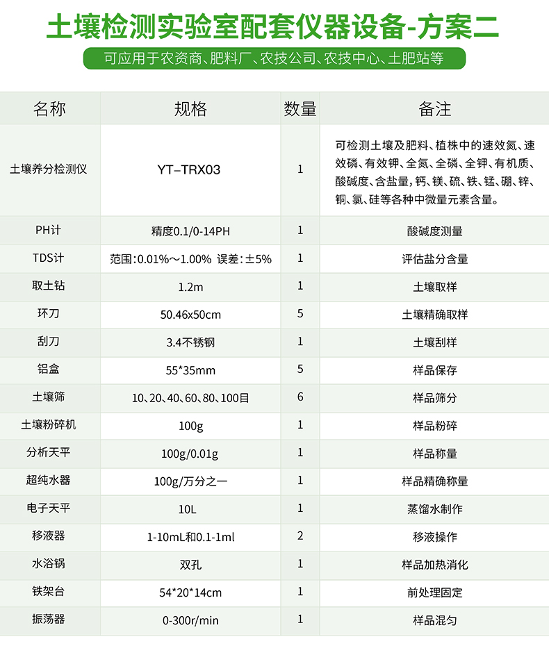 配套齊全,該儀器集藥、器、儀為一體,攜帶方便,相當(dāng)于一個小型實驗室,用戶只需提供蒸餾水即可在要求時間內(nèi)完成全部操作。適于農(nóng)業(yè)服務(wù)部門或農(nóng)資經(jīng)銷商鑒別肥料真假、肥料廠商肥料生產(chǎn)中控、農(nóng)資質(zhì)檢部門進行農(nóng)資打假,規(guī)范農(nóng)資市場。