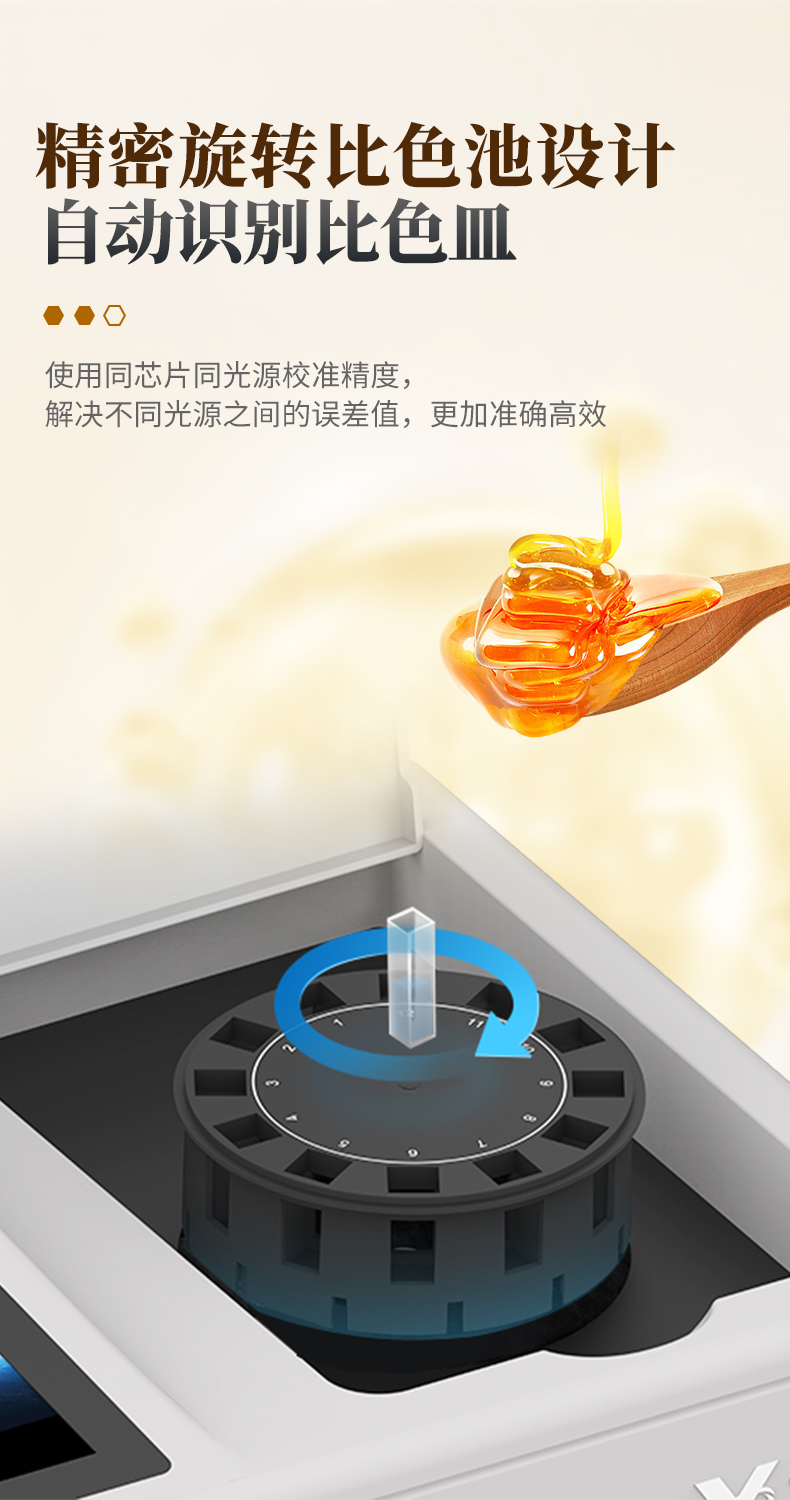 簡介:蜂蜜快速檢測儀光源采用進口超高亮發光二極管,高精度、穩定性強、光源可控、可以關掉不使用的光源,功耗更低。