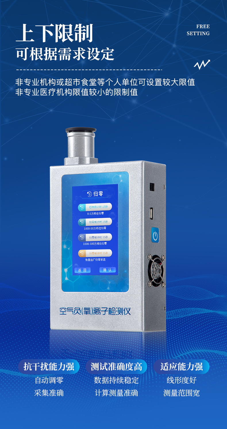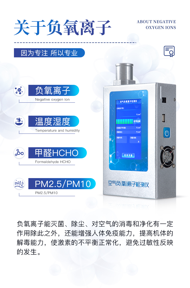 實時測量空氣中的大氣負氧離子濃度、甲醛濃度,是環境監測、納米涂料、負離子保健產品、負離子家裝建材、室內檢測、空氣治理、空氣凈化器及其制品負離子濃度的測量與演示的優選工具。