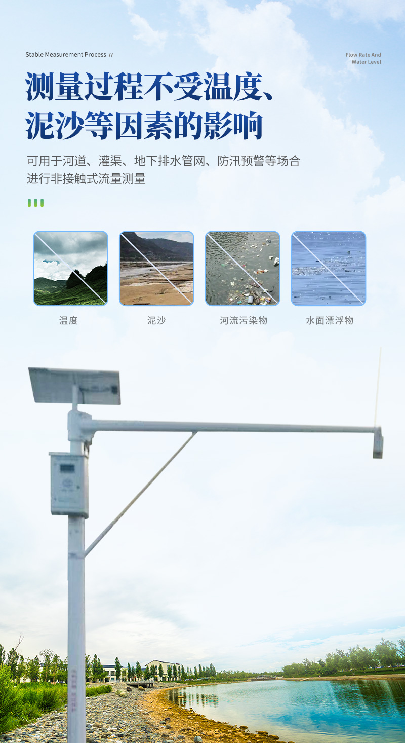 1. 非接觸式測量,結合斷面參數計算流量,不受風、溫度、霧霾、泥沙、漂浮物等影響;