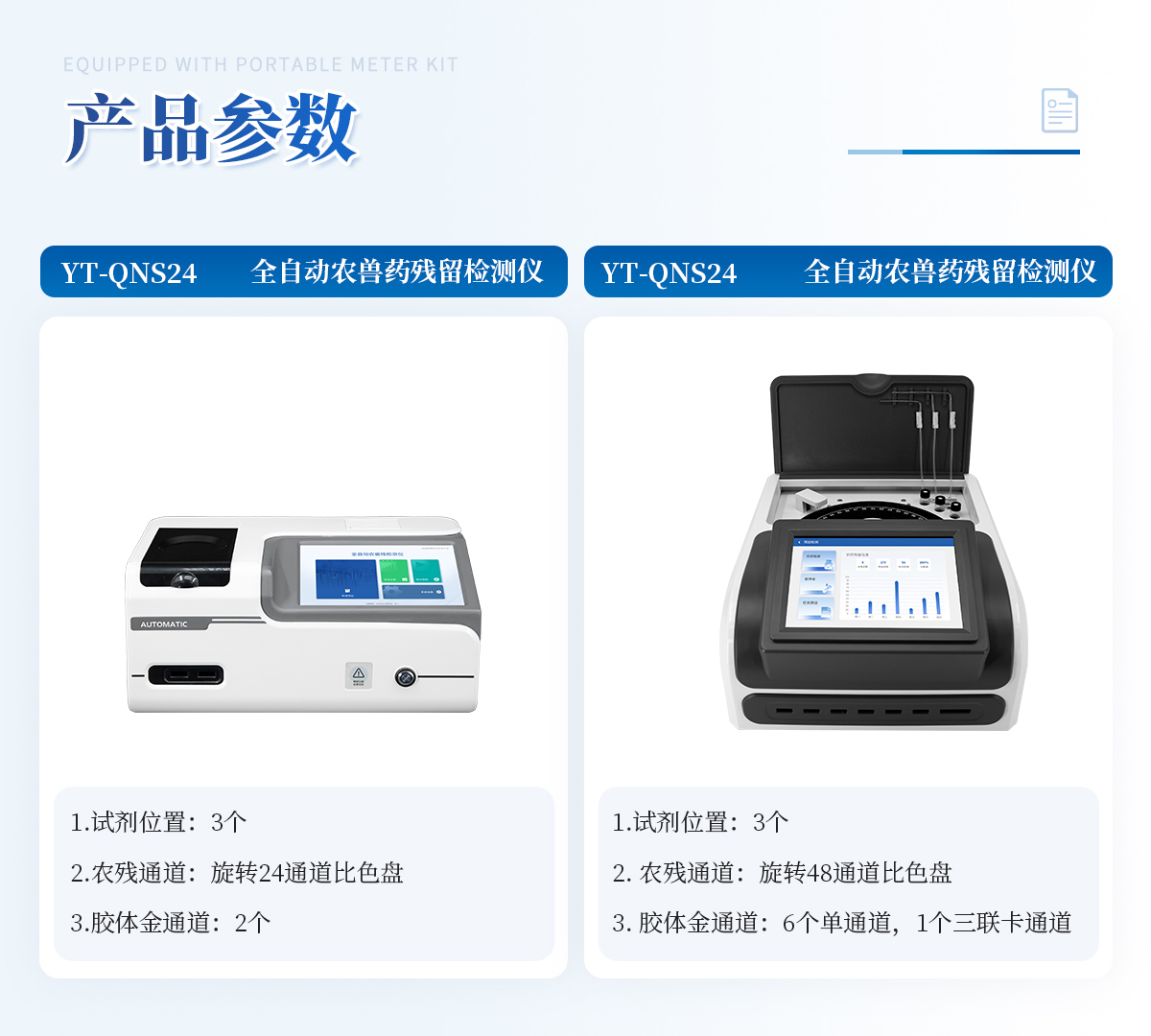 | 1. 試劑位置:3個 | 2. 農(nóng)殘檢測盤:旋轉(zhuǎn)24通道比色盤,可任意選擇檢測通道,自動對應(yīng)選擇通道。 | 3. 膠體金通道:2個,可讀取檢測卡結(jié)果,自動采集、處理分析,自動判斷檢測結(jié)果,并具備自動判空功能。 | 4.系統(tǒng)配置:10.1寸高清液晶觸摸屏,采用ARM Cortex?-A7,RK3288/4核處理器,運行內(nèi)存1GB。Android7.1.1 系統(tǒng)分辨率1280×800。 | 5.恒溫系統(tǒng):具有自動加溫溫控系統(tǒng),精準(zhǔn)恒溫37℃,精度±0.1℃。 | 6.添加系統(tǒng):儀器按照試劑要求自動、按時、按量加入試劑,并且自動對未正常放置的樣本或異常的樣本進行檢查并提示。 | 7.清洗功能:儀器具備回流及自動清洗管路功能,避免試劑污染。 | 8.混勻功能:設(shè)備具備自動混勻功能。 | 9.光源校準(zhǔn):設(shè)備可自動校準(zhǔn),確保檢測準(zhǔn)確度。 | 10.實時監(jiān)控:儀器測試過程中屏幕顯示運行狀態(tài),可實時查看。 | 11.數(shù)據(jù)存儲:內(nèi)部存儲16GB,可存儲500萬條數(shù)據(jù)。 | 12.樣品多選功能:設(shè)備具備樣品一鍵多選功能,選擇樣品自動匹配檢測通道。 | 13.項目預(yù)設(shè):可提前設(shè)置單個及多個相同或不相同的檢測任務(wù),可單次或者多次調(diào)取,減少檢測時間。 | 14.自定義打印系統(tǒng):內(nèi)置自定義打印系統(tǒng),可按需靈活設(shè)置開啟或關(guān)閉:產(chǎn)品合格證(國家農(nóng)業(yè)部標(biāo)準(zhǔn)),二維碼,抽樣信息、檢測信息,受檢信息等信息的打印。 | 15.A4版本報告打印功能:設(shè)備可自動生成A4版報告,A4報告帶二維碼,可掃描二維碼生成電子版,并可識別真?zhèn)巍? | 16.傳輸方式:儀器配備無線通信模塊: 4G(APN)通訊模塊、Wifi模塊,藍(lán)牙傳輸模塊,同時具有USB接口以及RJ45接口能以多種方式實現(xiàn)數(shù)據(jù)保存和數(shù)據(jù)傳輸功能,設(shè)備數(shù)據(jù)可以同步上傳至平臺。 | 17.系統(tǒng)17.數(shù)據(jù)監(jiān)管系統(tǒng):設(shè)備自帶監(jiān)管平臺,并可同步對接監(jiān)管平臺,數(shù)據(jù)可局域網(wǎng)和互聯(lián)網(wǎng)數(shù)據(jù)上傳,檢測結(jié)果可直接傳至食品安全監(jiān)管平臺。達到食品安全問題預(yù)估、預(yù)警。 | 18.系統(tǒng)遠(yuǎn)程更新功能:無需設(shè)備返廠,即可遠(yuǎn)程實時升級全新系統(tǒng),節(jié)省時間成本及避免運輸造成設(shè)備損。 |