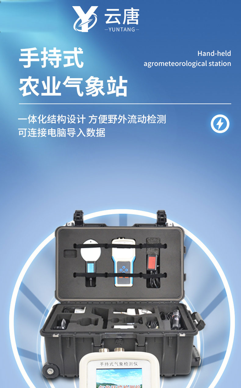 簡介:簡述:手持式智能農業(yè)氣象環(huán)境檢測儀是我們專門針對農田、草場局部小尺度環(huán)境設計的,對與植被和農作物生長密切相關的土壤、水氣等環(huán)境參數(shù)監(jiān)測的農田小氣候站。它主要觀測與農業(yè)相關的空氣溫度、空氣濕度、光照強度、二氧化碳濃度、光合有效輻射、土壤溫度、土壤水分、風速、風向、土壤鹽分、降雨量、大氣壓力、葉