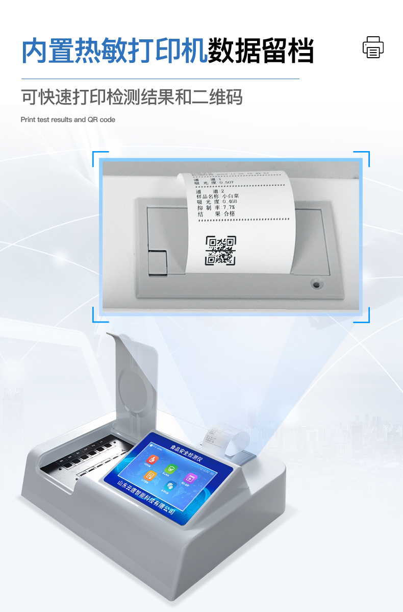 5、配備新一代嵌入式熱敏打印機(jī),可選擇手動打印或者自動打印,檢測完成可自動打印檢測報(bào)告和二維碼。
