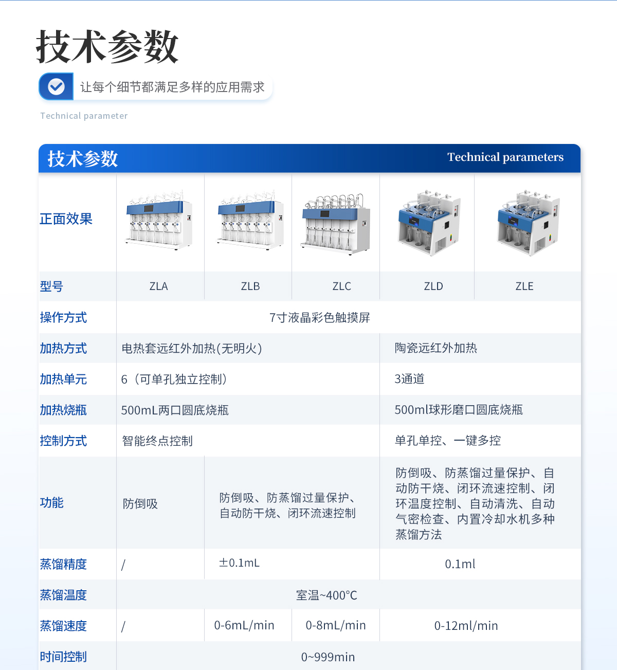 | 功能 | 防倒吸、防蒸餾過量保護、自動防干燒、閉環流速控制、閉環溫度控制、自動清洗、自動氣密檢查、多種蒸餾方法、內置冷卻水機 | |