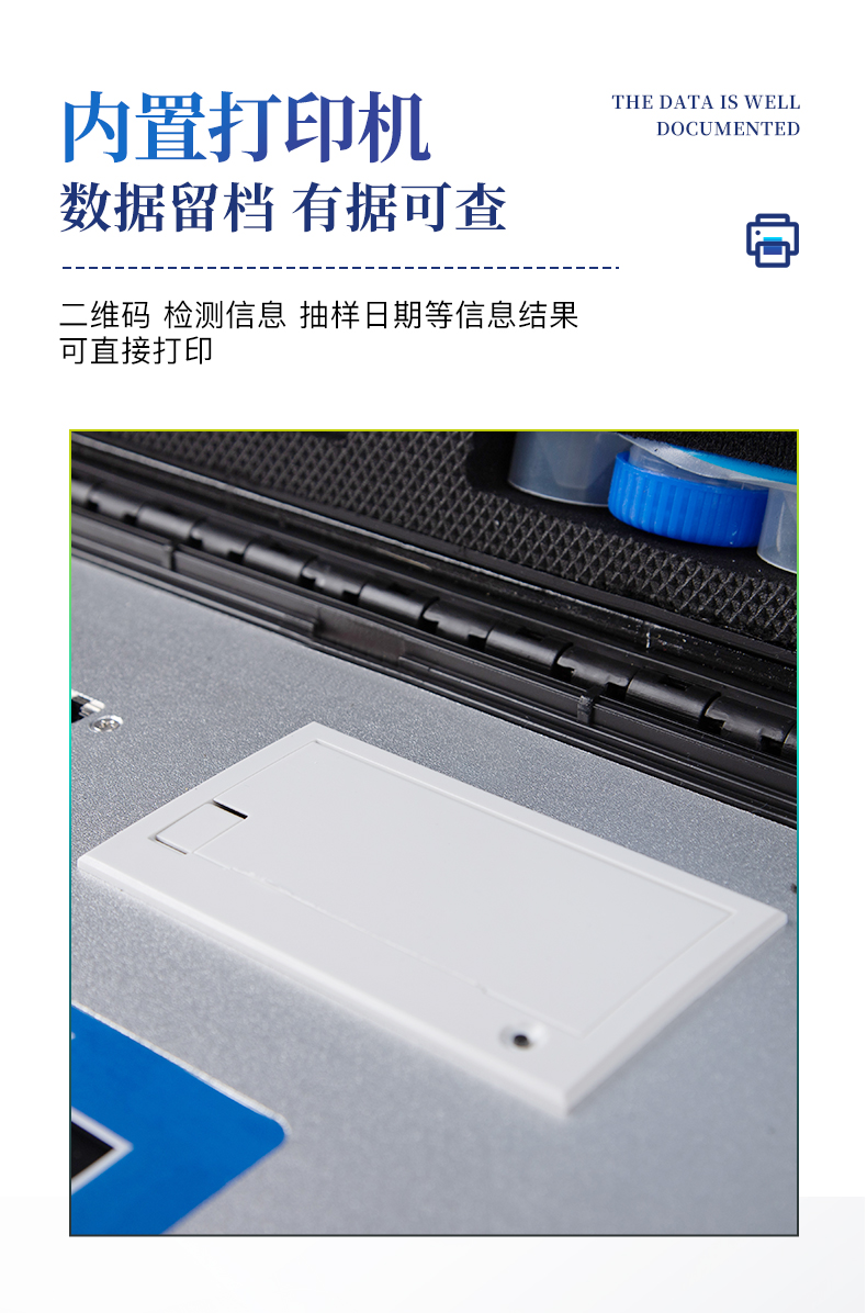 | 1、安卓智能操作系統,采用更加**和人性化操作,儀器具有網線連接、wifi聯網上傳、GPRS無線遠傳功能,快速上傳數據。 | 2、智能化程度高,儀器具有自檢功能:具有開機自檢和調零功能,具有自動檢測重復性功能。 | 3、新一代高速熱敏打印機,檢測完成可自動打印檢測報告和二維碼。 | 4、儀器帶有監管平臺,數據可局域網和互聯網數據上傳,檢測結果直接傳至食品安全監管平臺。進行區域食品安全監管及大數據分析處理與數據統計,檢測區域食品安全長短期動態,達到食品安全問題預估、預警 | 5、一體化主機,包含食品安全檢測模塊、多通道農藥殘留檢測模塊、膠體金免疫層析檢測模塊。 | 6、一體化便攜式快檢設備,滿足現場及流動檢測使用需求,能夠在同一軟件下實現所有檢測項目的檢測,并可通過同一窗口直觀顯示檢測結果。 | 7、膠體金模塊檢測方式:軌道式自動傳輸掃描,檢測完成后自動退出檢測卡。 | 8、CT線自動識別,無需手動調整。 | 9、儀器具有品類多種類樣品菜單庫,可靈活選擇檢測樣品,不同的檢測通道可同時檢測不同的樣品項目。 | 10、樣品處理簡單省力,整體操作快速、安全、便捷。 | 11、儀器具有自身保護功能,可設置用戶名及密碼,防止非工作人員操作等。 | 12、高靈敏度,高檢測精度,高重復性精度,掃描式高精度光學傳感器。 | 13、內置強大的數據庫,可在儀器上直接選擇樣品名稱、檢測指標、送檢單位等信息,也可在儀器上直接編輯錄入樣品名稱、檢測指標、送檢單位等信息并保存進樣品數據庫。 | 14、儀器具有重新校準、鎖定、恢復出廠設置功能。 | 15、結果判定線可修改,對照值標定值可保存,斷電不丟失數據。 | 16、兼容市場上所有的膠體金卡,使用耗材不受限制,極大增強用戶使用體驗。 |