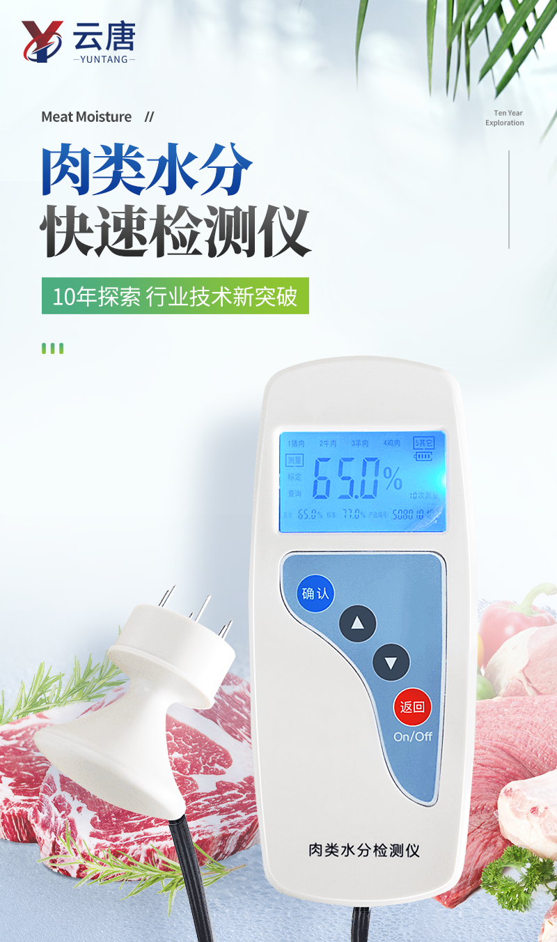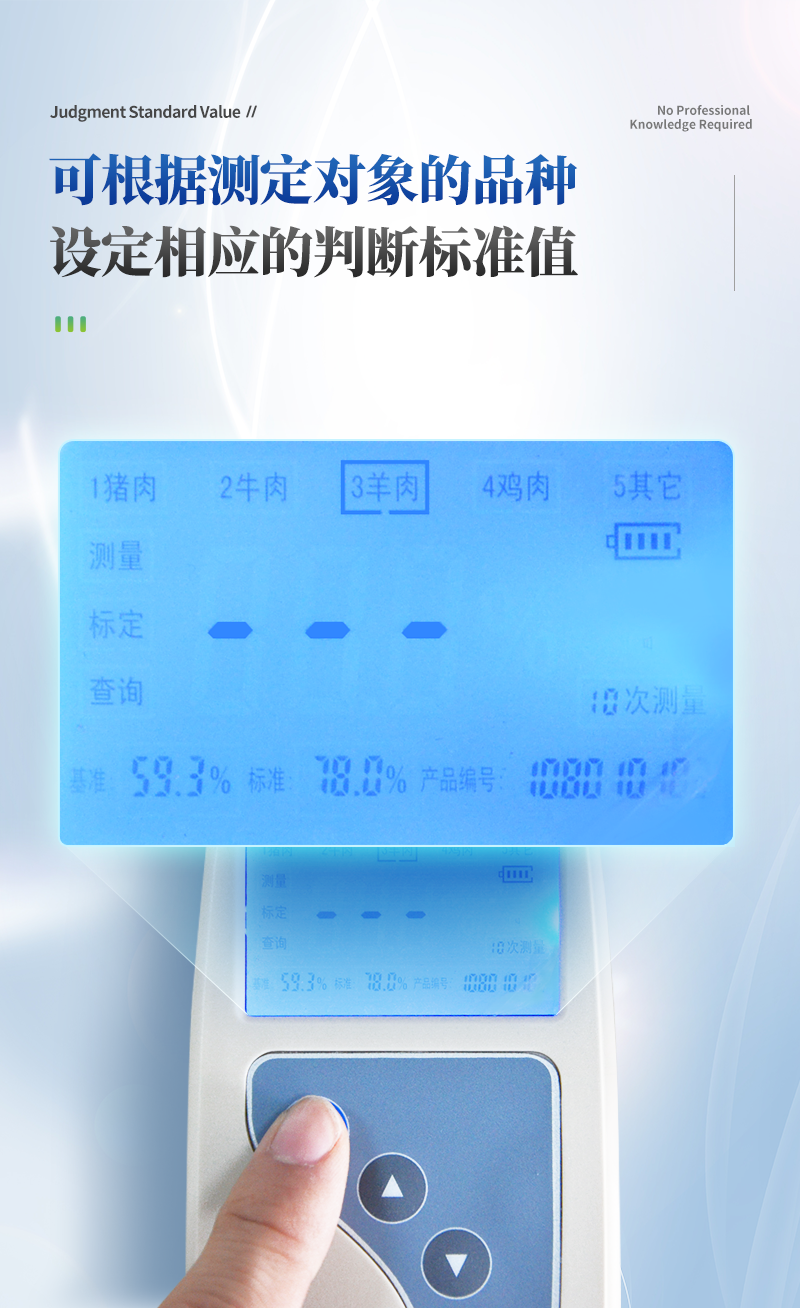 肉類水分檢測儀主要用于快速豬肉、牛肉、雞肉等動物肉類水分含量,從而判斷所測樣品是否為注水肉,該儀器設(shè)計精巧,單手可持,儀器可根據(jù)測定對象的品種,設(shè)定相應(yīng)的判斷標(biāo)準(zhǔn)值。
