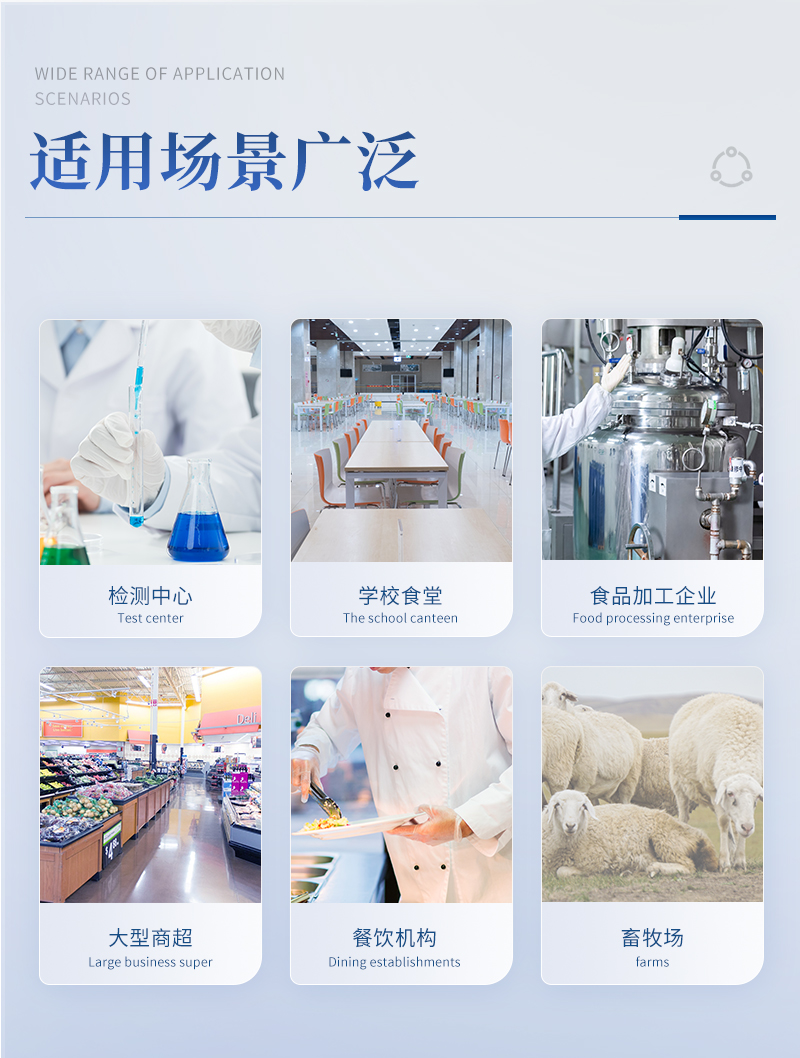可快速檢測(cè)病害肉、組胺、揮發(fā)性鹽基氮,儀器預(yù)留其他項(xiàng)目檢測(cè)程序和端口,根據(jù)日后需求可方便的自主增加檢測(cè)項(xiàng)目。