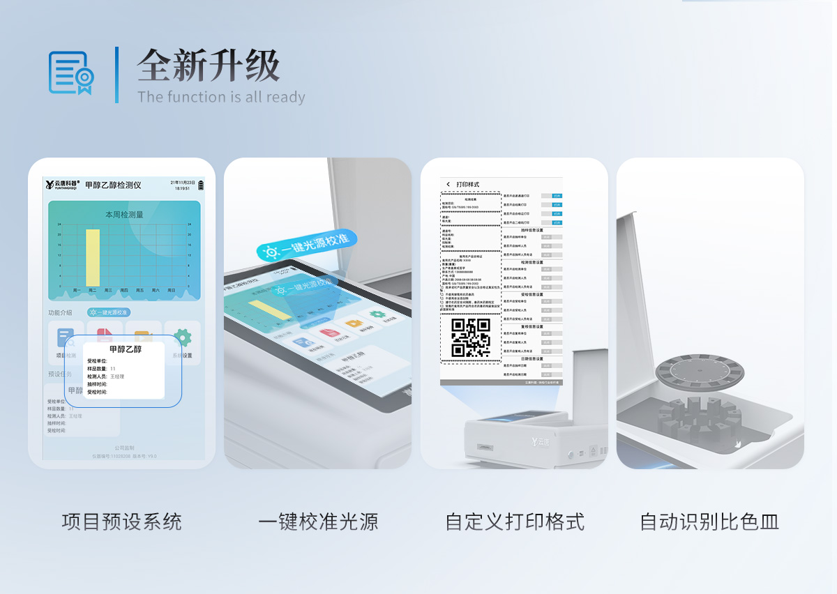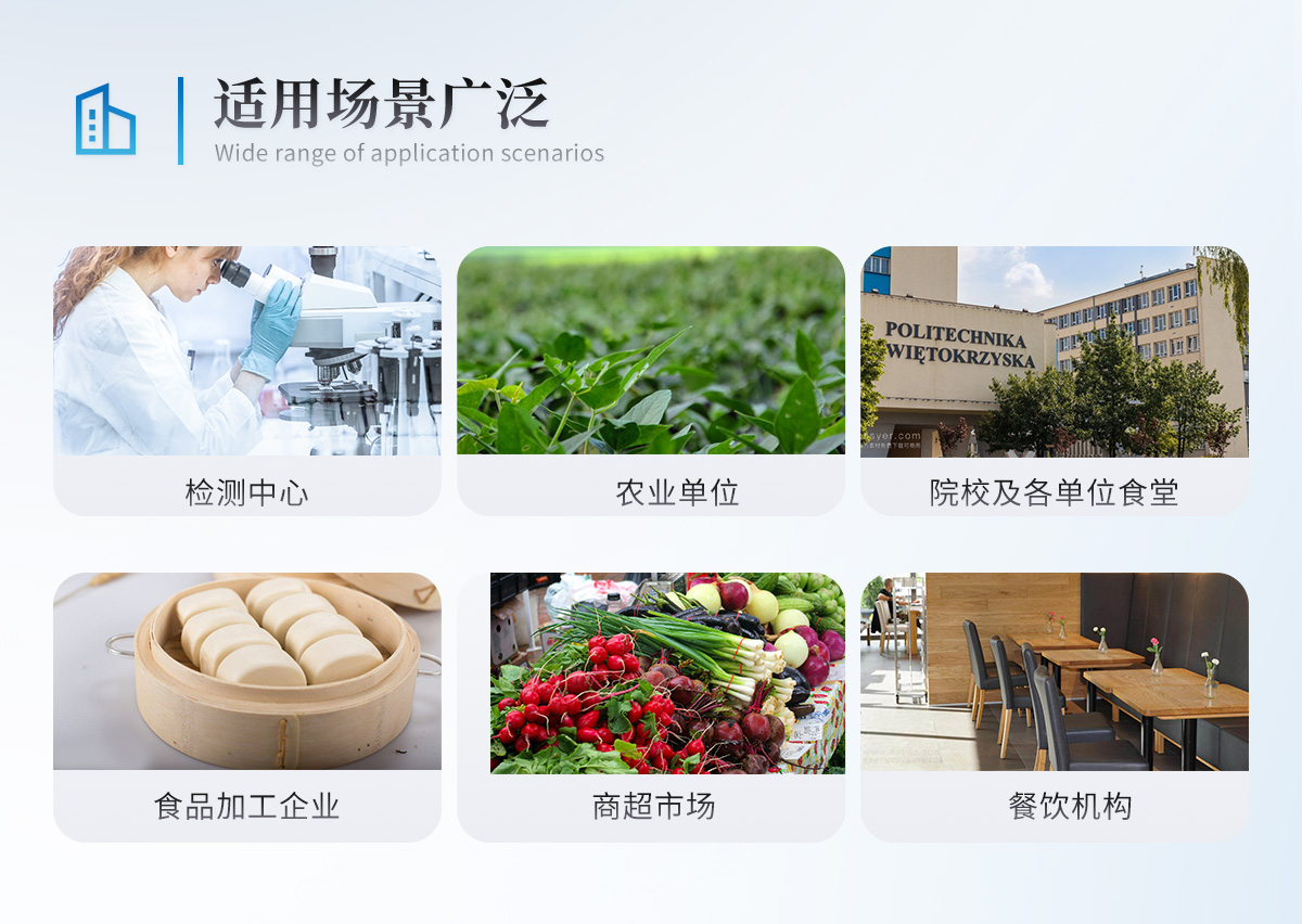 儀器采用臺式一體化系統(tǒng)檢測技術(shù),將分光光度模塊、新型農(nóng)殘檢測模塊、數(shù)字化管理模塊、無線通訊模塊高度集成于一體,支持檢測200種食品安全檢測項目,同時預(yù)留升級檢測方法。儀器檢測模塊標(biāo)準(zhǔn)化、智能化,可隨意自由組合。檢測箱體內(nèi)置多個標(biāo)準(zhǔn)檢測單元,檢測模塊可以調(diào)整配置。儀器采用全新安卓智能系統(tǒng),主控芯片采用 ARM Cortex-A7,RK3288/4核處理器,10.1寸高清液晶觸摸豎屏,更加**的UI交互界面,運轉(zhuǎn)快捷;儀器配備無線通信模塊: 4G(APN)通訊模塊、Wifi模塊,藍(lán)牙傳輸,同時具有雙USB接口以及RJ45接口能以多種方式實現(xiàn)數(shù)據(jù)保存和數(shù)據(jù)傳輸功能。創(chuàng)新檢測模式:★檢測通道:≥12通道;采用精密旋轉(zhuǎn)比色池設(shè)計,使用同芯片同光源校準(zhǔn)精度,解決不同光源之間的誤差值。1-12通道間誤差0.1%。(**號:**202022821055.2)★儀器具有自動識別比色皿檢測功能,即:將樣品比色皿放入儀器后,點擊樣品檢測,儀器自動識別比色皿進(jìn)行通道檢測。進(jìn)口高精光源:高精度進(jìn)口四波長冷光源,通道配置 410、520、590、630nm 波長光源,一個光源芯片驅(qū)動一個光源,誤差極小,每臺設(shè)備單獨**校準(zhǔn)光源,**比對,同時參照四種不同波段光源全方位覆蓋市面上99%的農(nóng)殘食品項目檢測。智能化操作系統(tǒng):便捷操作系統(tǒng):設(shè)備檢測時可在同一檢測界面自動對應(yīng)相關(guān)檢測通道一次性選擇1-12個樣品名稱,無須退出界面,節(jié)省操作時間。數(shù)據(jù)集成系統(tǒng):設(shè)備首頁自動統(tǒng)計檢測數(shù)據(jù)包含:周檢測數(shù)據(jù)、月檢測數(shù)據(jù),全部檢測總數(shù)量,均包含檢測總數(shù),合格數(shù),不合格數(shù),以及相關(guān)柱形分析圖,對各項檢測數(shù)據(jù)清晰掌握,無需電腦查詢,更加快捷直觀。項目預(yù)設(shè)系統(tǒng):支持添加單個及多個相同或不相同的任務(wù)預(yù)設(shè),一鍵快速調(diào)取,每一個任務(wù)分別可以設(shè)置不同的樣品、批次、編號、來源、備注、抽樣信息、檢測信息、受檢信息、復(fù)核信息等更多信息。無縫鏈接平臺和APP實時查看下發(fā)任務(wù)。數(shù)據(jù)監(jiān)管系統(tǒng):同步對接監(jiān)管平臺,數(shù)據(jù)可局域網(wǎng)和互聯(lián)網(wǎng)數(shù)據(jù)上傳,檢測結(jié)果可選擇直接傳至食品安全監(jiān)管平臺。集成OSS輸出存儲服務(wù)、區(qū)分設(shè)備定向管理應(yīng)用,進(jìn)行區(qū)域食品安全監(jiān)管及大數(shù)據(jù)分析處理與數(shù)據(jù)統(tǒng)計,檢測區(qū)域食品安全長短期動態(tài),達(dá)到食品安全問題預(yù)估、預(yù)警。自定義打印系統(tǒng):內(nèi)置全新打印系統(tǒng),新創(chuàng)自定義打印方式,可按需靈活設(shè)置開啟或關(guān)閉:產(chǎn)品合格證(國家農(nóng)業(yè)部標(biāo)準(zhǔn)要求),二維碼,抽樣信息、檢測信息,受檢信息、復(fù)核信息、抽樣日期、檢測日期等信息的打印。系統(tǒng)遠(yuǎn)程更新功能:可定向分客戶分儀器更新系統(tǒng),按照不同客戶后期實際需求添加項目,無需機器返廠,即可遠(yuǎn)程實時升級全新系統(tǒng),節(jié)省時間成本及避免運輸造成設(shè)備損壞。儀器主機采用一體化防水、抗壓、防撞擊、防腐蝕箱體設(shè)計,同時配備交直流供電,可連接車載電源,可選配大容量充電鋰電池,滿足現(xiàn)場野外檢測需求。安全證書,放心保障:儀器具有中國計量科學(xué)研究院校準(zhǔn)證書,權(quán)威認(rèn)證。
