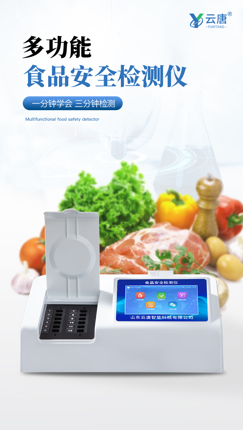 可快速檢測各類食品中的亞硝酸鹽、二氧化硫、甲醛、吊白塊、雙氧水、硼砂、農藥殘留、乳及乳制品中蛋白質、硝酸鹽、重金屬鉛的含量,儀器預留其他項目檢測程序和端口,根據日后需求可方便的自主增加檢測項目。