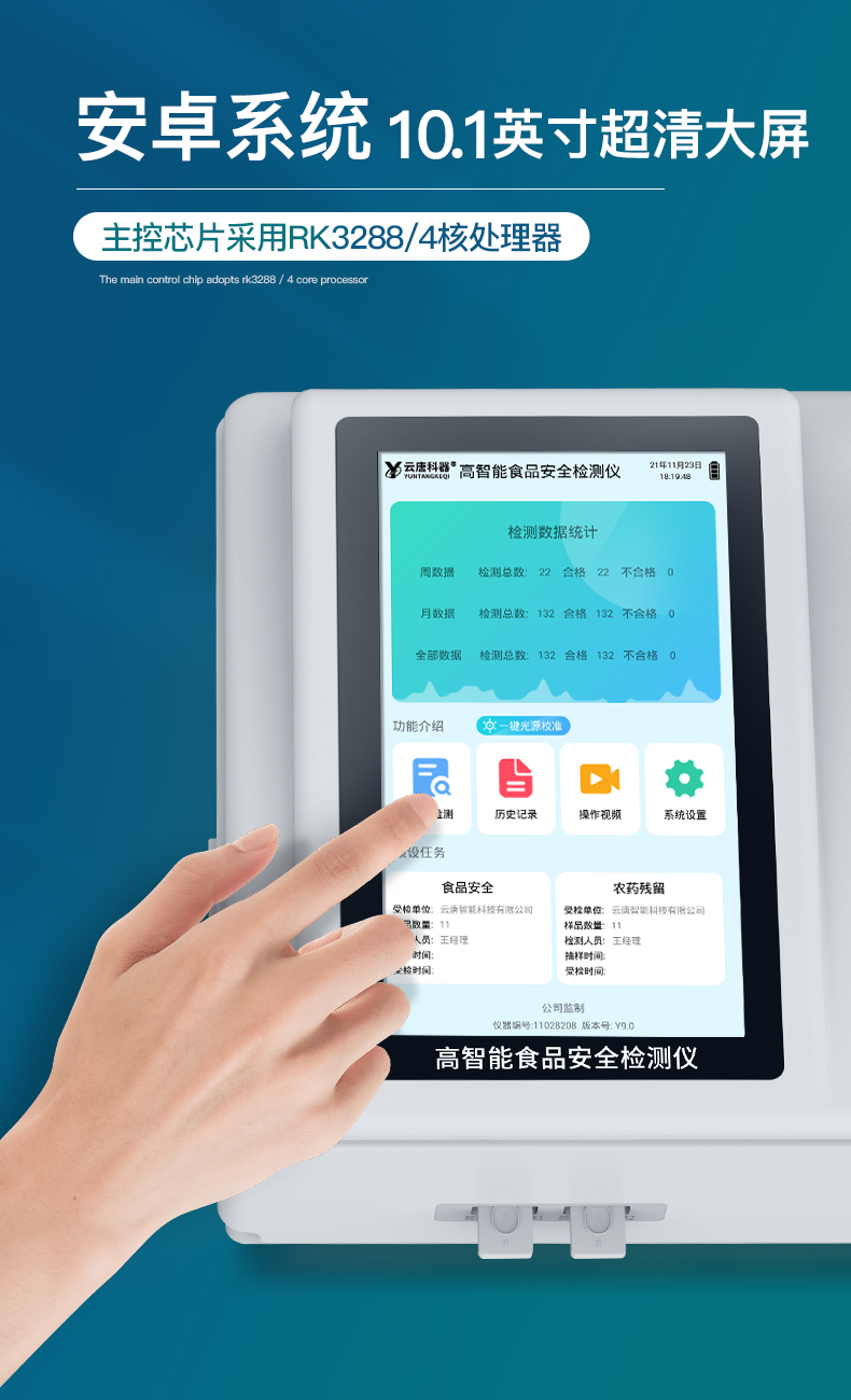 1、儀器采用臺式一體化系統檢測技術,將分光光度模塊、數字化管理模塊、無線通訊模塊高度集成于一體,可支持檢測60種食品安全檢測項目,同時預留升級檢測方法。