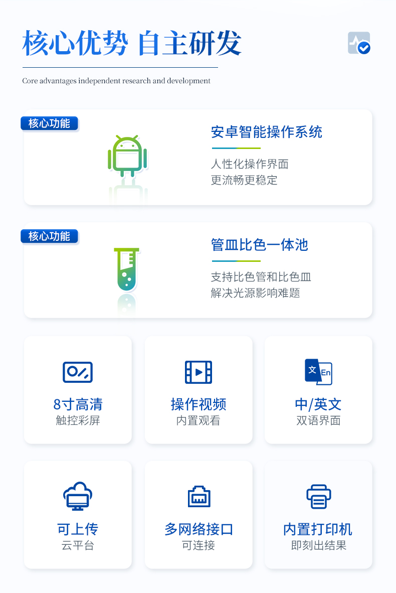 3、采用精密比色池設(shè)計(jì),使用光源一致,可以解決由于光源誤差帶來(lái)的檢測(cè)結(jié)果誤差問(wèn)題,檢測(cè)結(jié)果更加精準(zhǔn)。