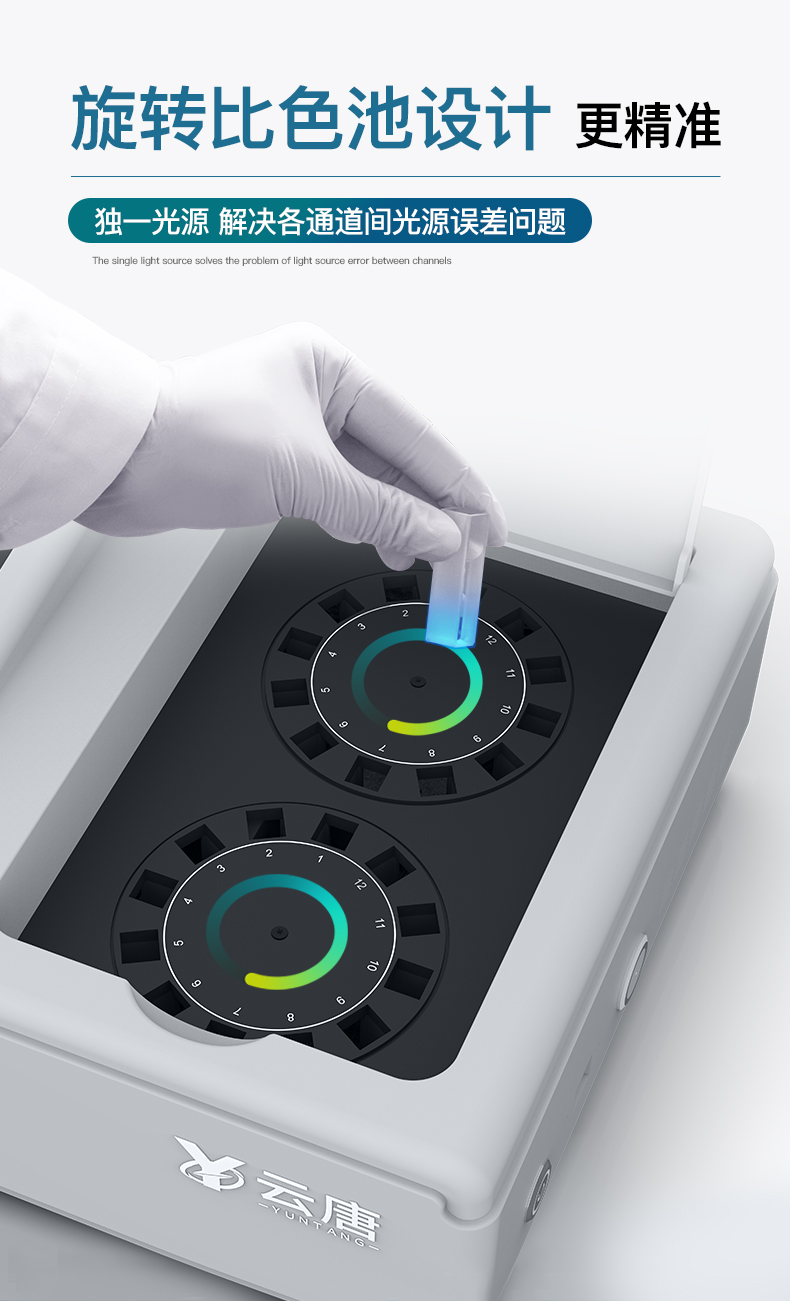 4、檢測通道:≥12通道;采用精密旋轉比色池設計,使用同芯片同光源校準精度,解決不同光源之間的誤差值,更加準確**。(1-12通道間誤差0.1%,**號:**202022821055.2)