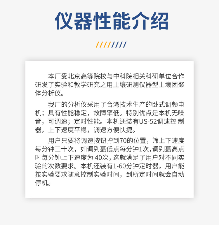 我公司的土壤團粒分析儀采用雙CPU控制,液晶屏顯示,觸摸板控制。具有性能穩定,運行平穩,電磁加熱,節能環保,壽命長等特點。