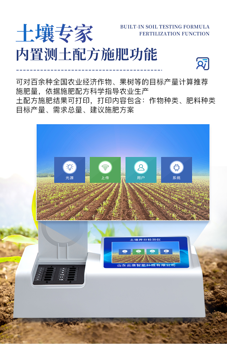 配套齊全:該儀器相當于一個小型實驗室,無需用戶自配附件。適于農業服務部門或農資經銷商、合作社、肥料廠商、大種植戶測土施肥。