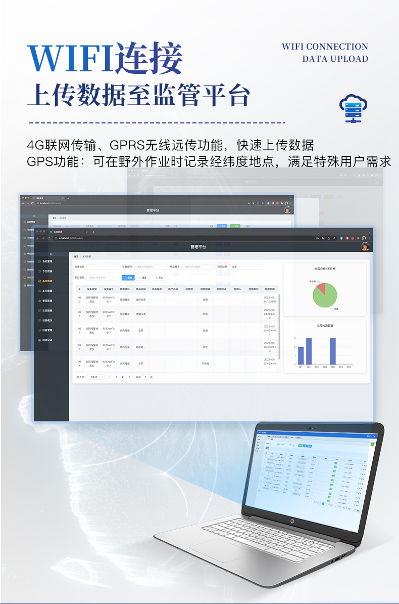6、儀器標配wifi無線上傳、4G聯網傳輸、GPRS無線遠傳功能,快速上傳數據。