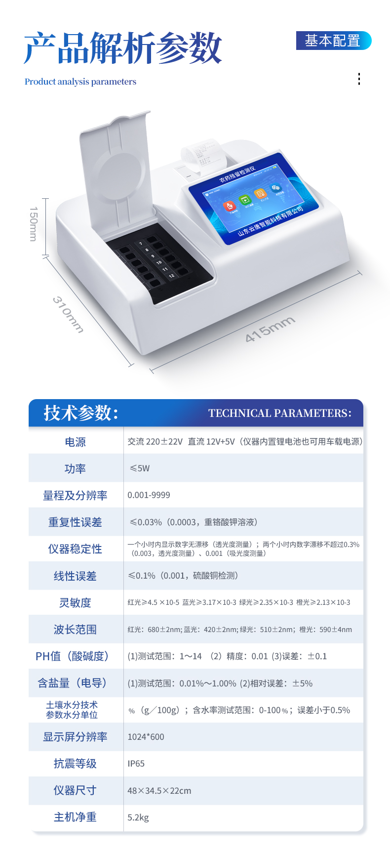 六、多功能土壤養分檢測儀技術參數: