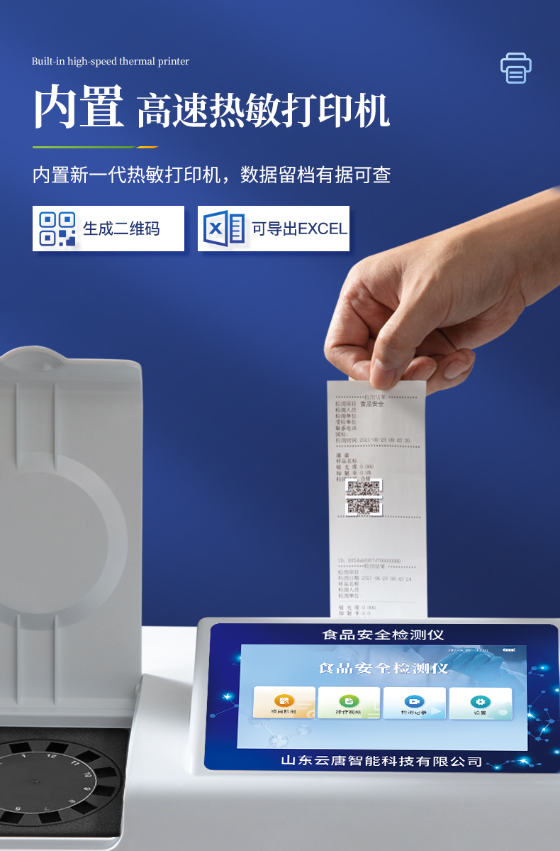 8.4、打印系統:內置全新打印機,可以打印:項目名稱,二維碼,抽樣信息、檢測信息,受檢信息、復核信息、抽樣日期、檢測日期等信息的打印。