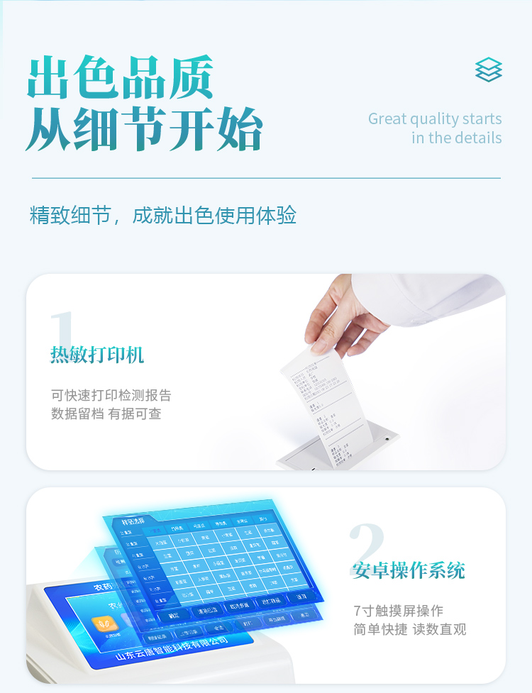 1、安卓智能操作系統,采用更加**和人性化操作,儀器具有無線聯網上傳功能,快速上傳數據,進行數據統計和分析。