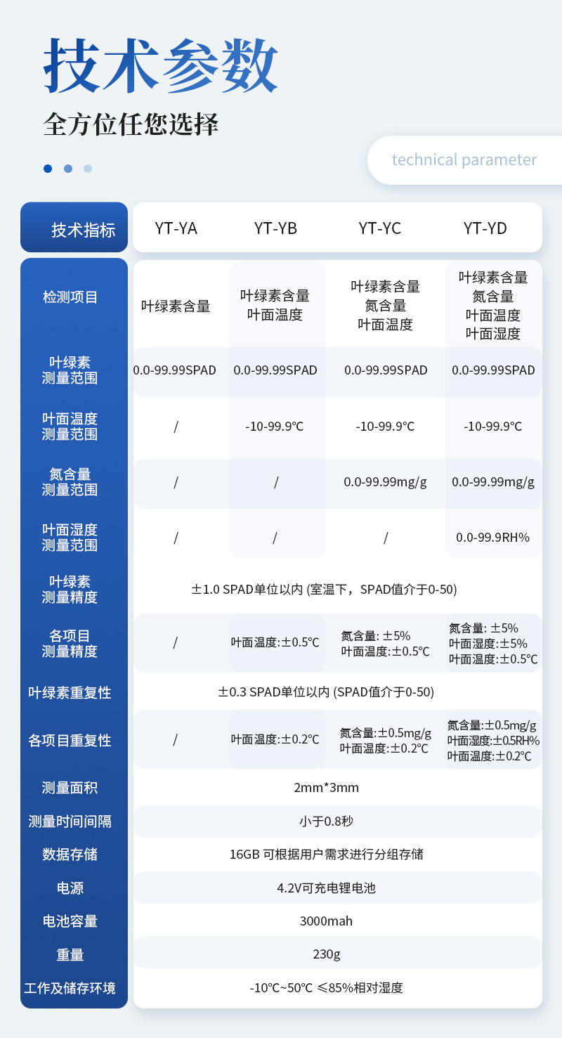 氮含量: ±5%  葉面濕度:±5%  葉面溫度:±0.5℃